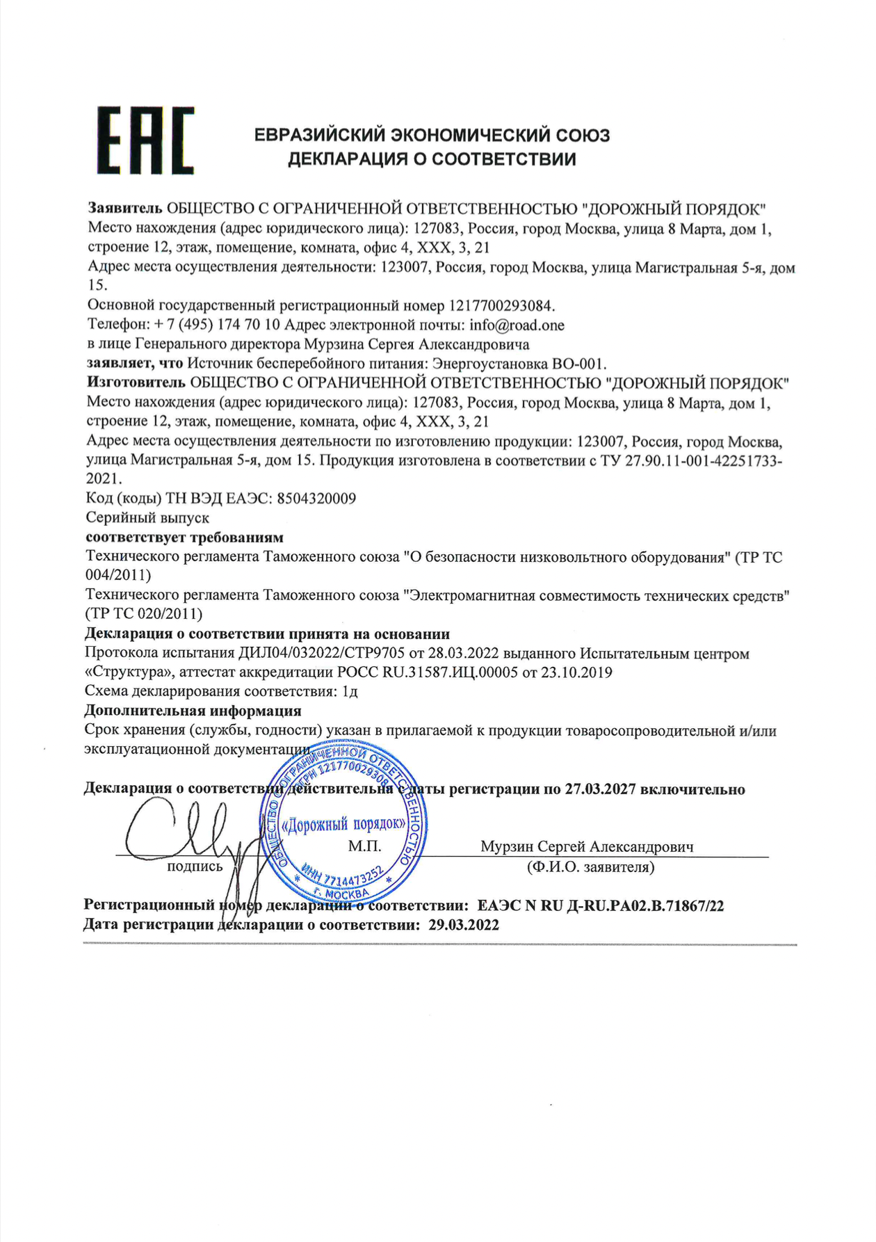 Декларация о соответствии